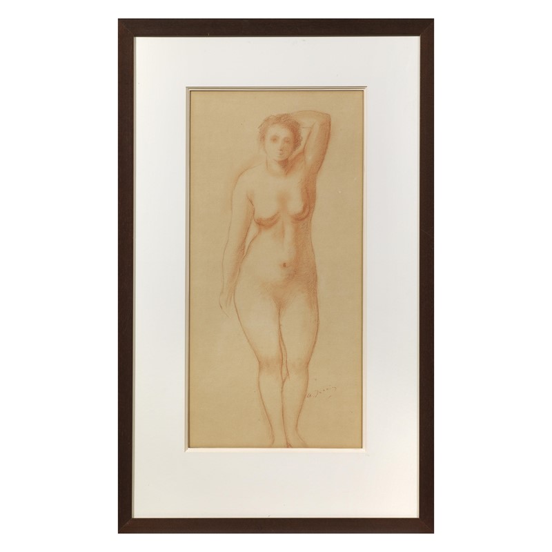 André Derain (Chatou 1880 - Garches 1954) STUDIO DI NUDO FEMMINILE sanguigna su cartone, cm 61x36,5 firmato in basso a destra retro: cartglio della Compagnia del Disegno, Milano