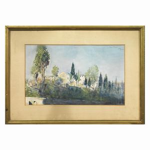 Filippo Anivitti (Roma 1876 - 1955) PAESAGGIO DELLA VIA APPIA acquerello su carta, cm 38x66 firmato in basso a [..]