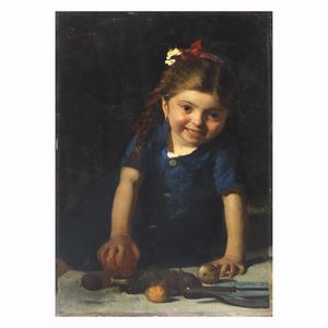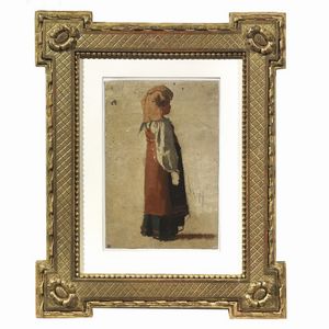 Scuola francese, secolo XIX CONTADINELLA olio su cartoncino applicato su cartone, cm 23,5x15,5 Scuola francese, [..]