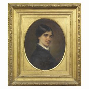 Scuola toscana, sec. XIX RITRATTO DI GENTILDONNA olio su tela, cm 35,5,x29,5 Tuscan school, 19th century PORTRAIT [..]