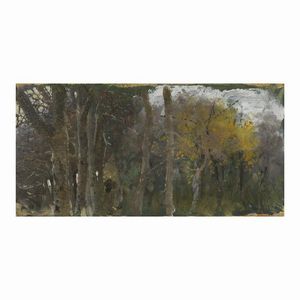 Scuola toscana, secolo XIX PAESAGGIO olio su cartoncino, cm 8x17 Tuscan school, 19th century LANDSCAPE oil on [..]