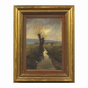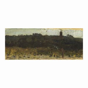Ferruccio Pagni (Livorno 1866 - Torre Del Lago 1935) PAESAGGIO CON CONTADINELLA olio su cartone, cm 16x10 firmato [..]