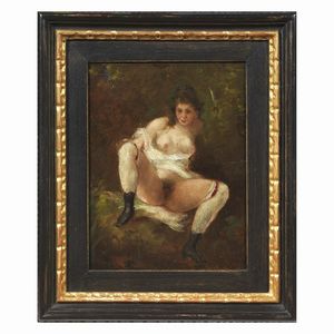 Scuola francese, secolo XIX LA MODELLA olio su tavola, cm 24x19 French school, 19th century THE MODEL oil on [..]
