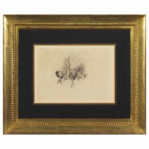 Giovanni Boldini (Ferrara 1842 - Parigi 1931) GENTILUOMINI A CAVALLO incisione, cm 20x27 GENTLEMEN ON HORSEBACK [..]