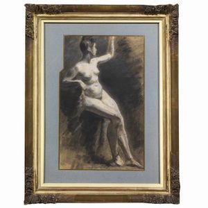 Scuola francese, secolo XIX STUDIO DI NUDO FEMMINILE SEDUTO pastello su carta applicata su cartone, cm 44,5x28 [..]