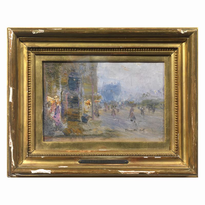 PORTE MAILLOT oil on cardboard, 11.5x18 cm signed and inscribed Paris lower right on the reverse: titled and inscribed 289, stamp Collezione O. Casella
