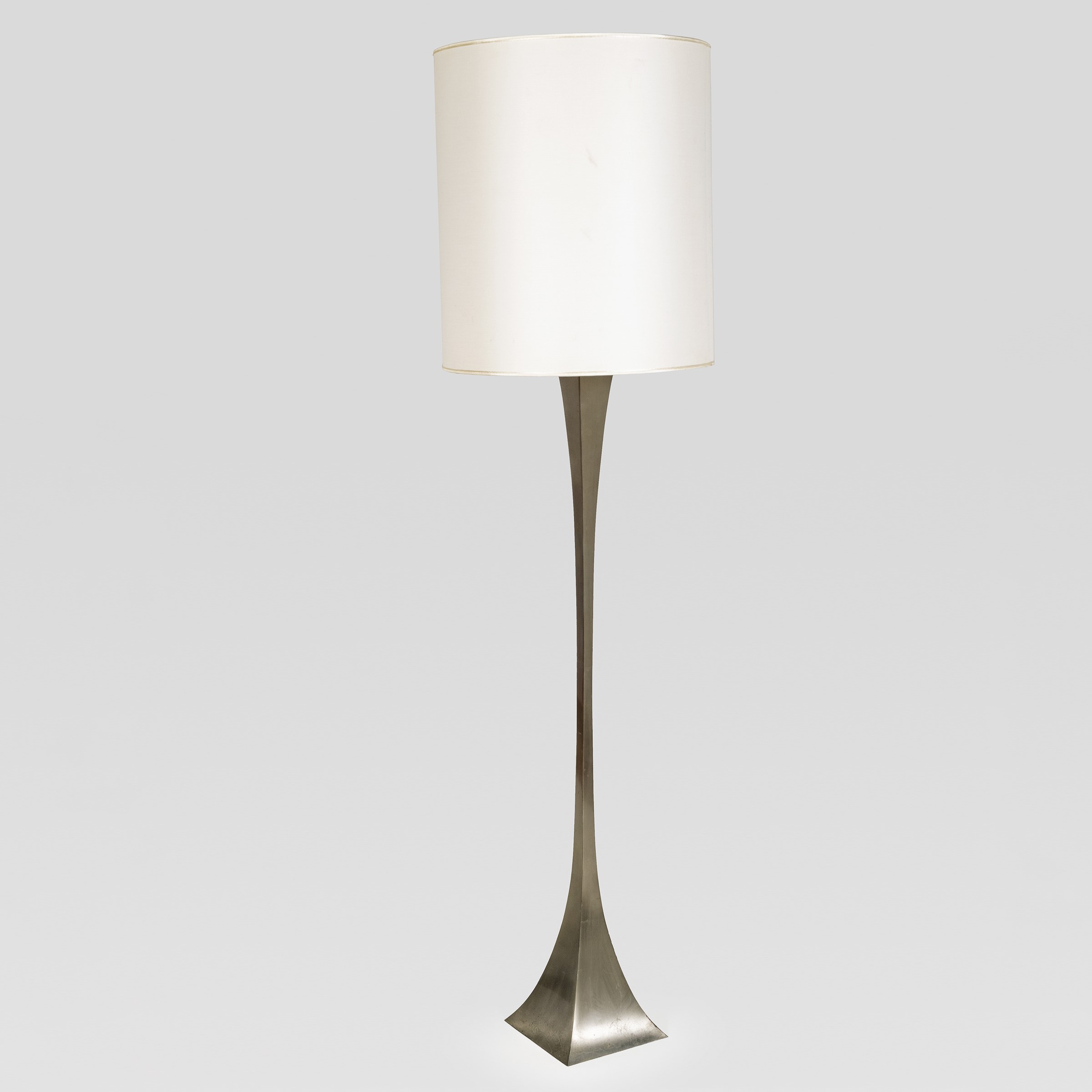 Italia, anni 70 lampada da terra mod. Piramide in acciaio spazzolato, completa di paralume, usure