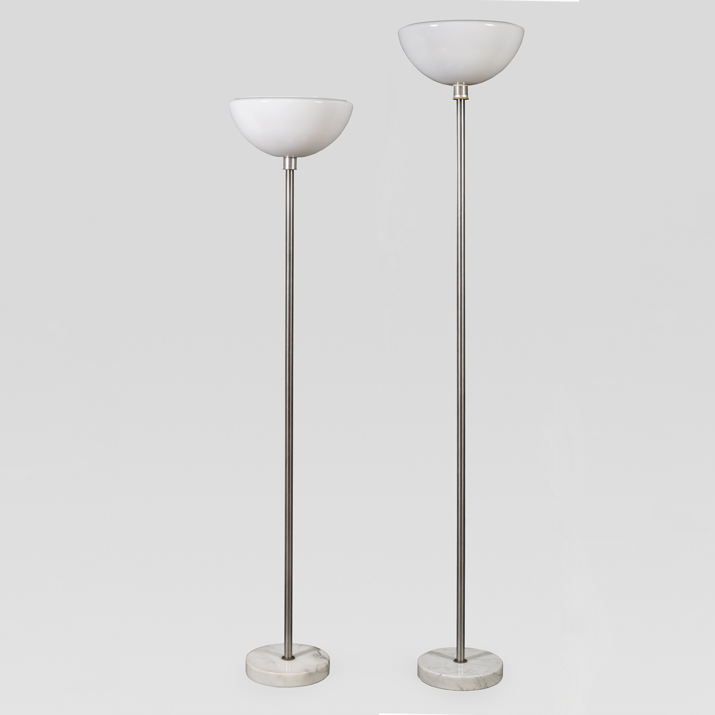 Italia, anni 60 coppia di lampade da terra mod. Papavero in acciaio e marmo con diffusori in vetro opalino, marchio della produzione