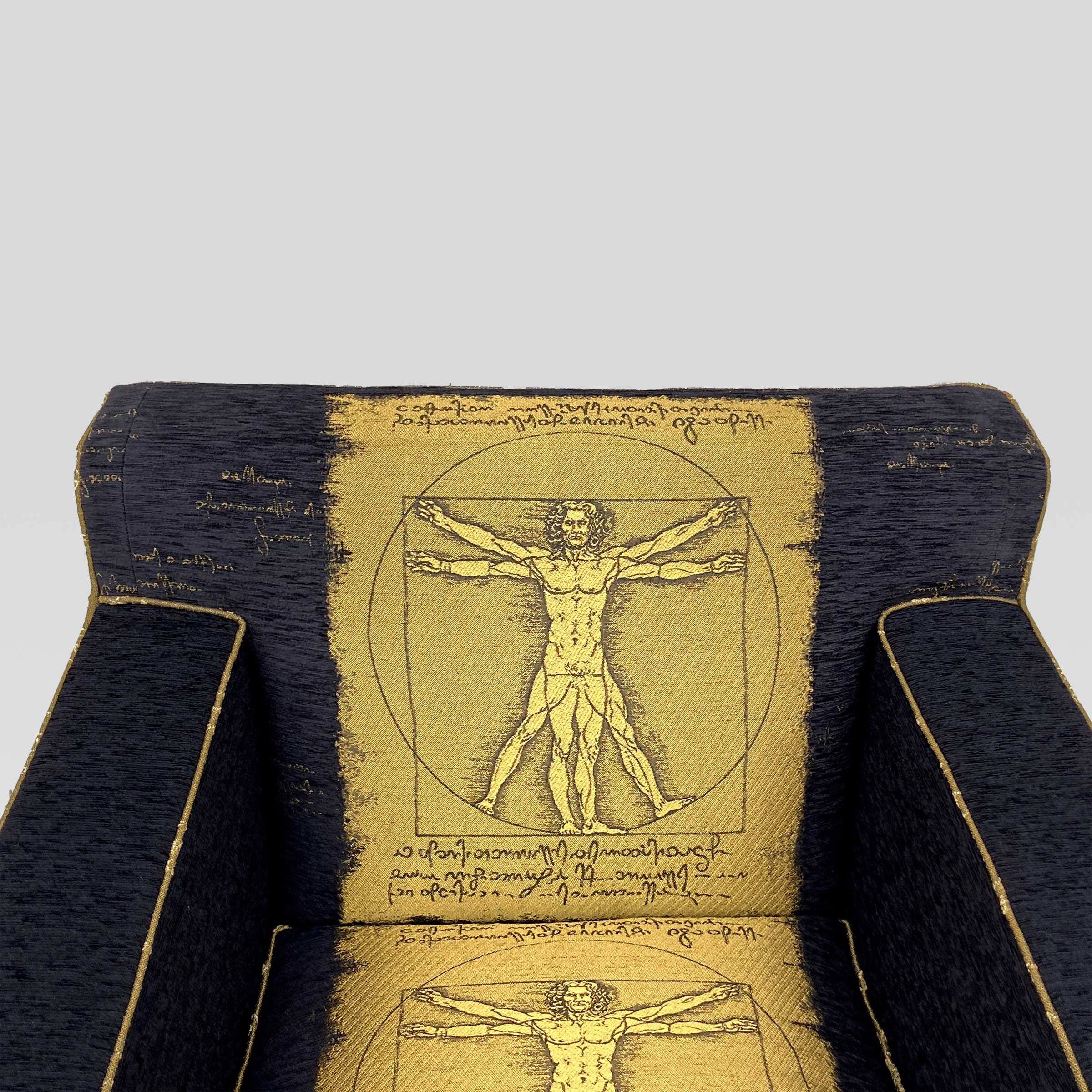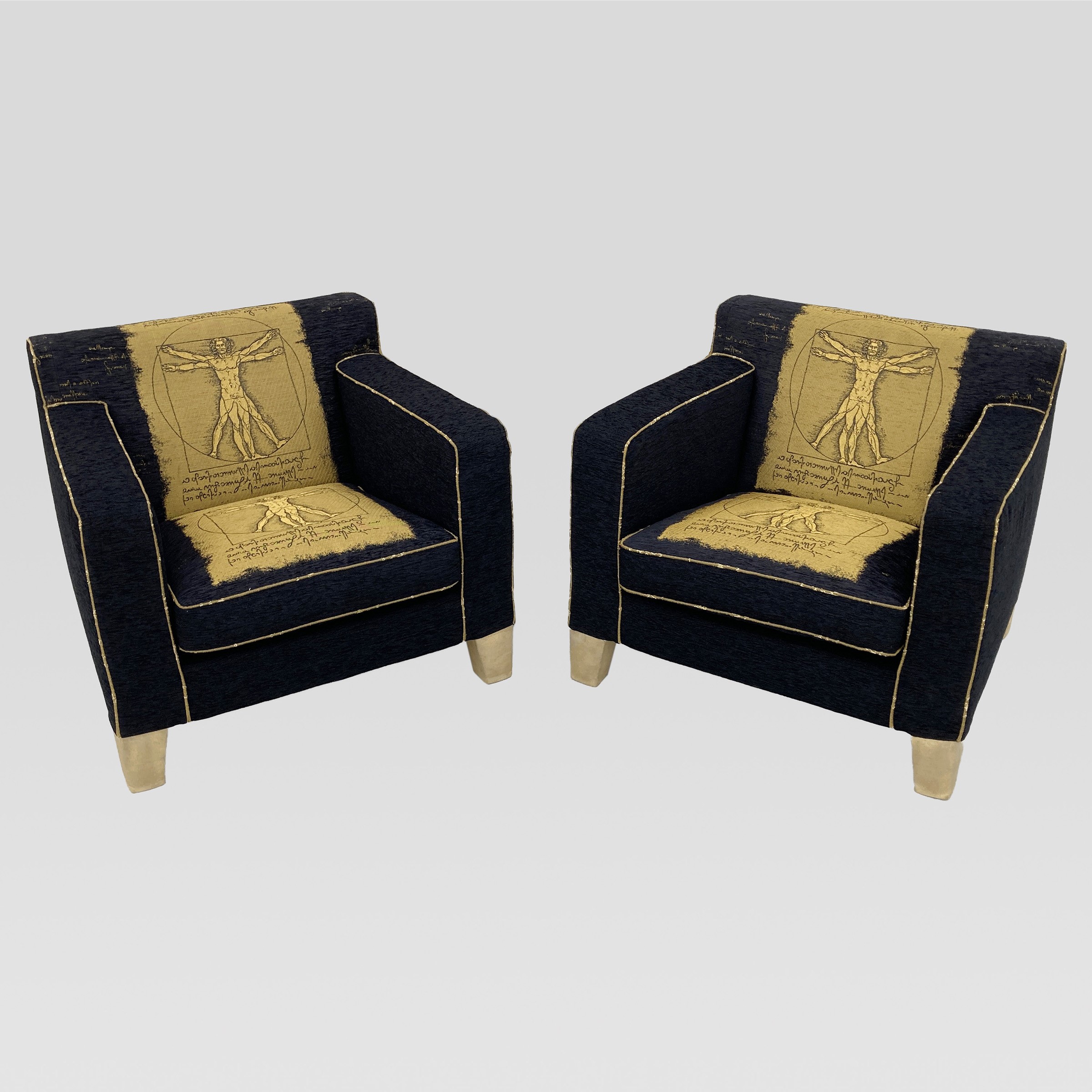 Italia, anni 90 coppia di poltrone mod. Cubis in legno dorato e tessuto imbottito