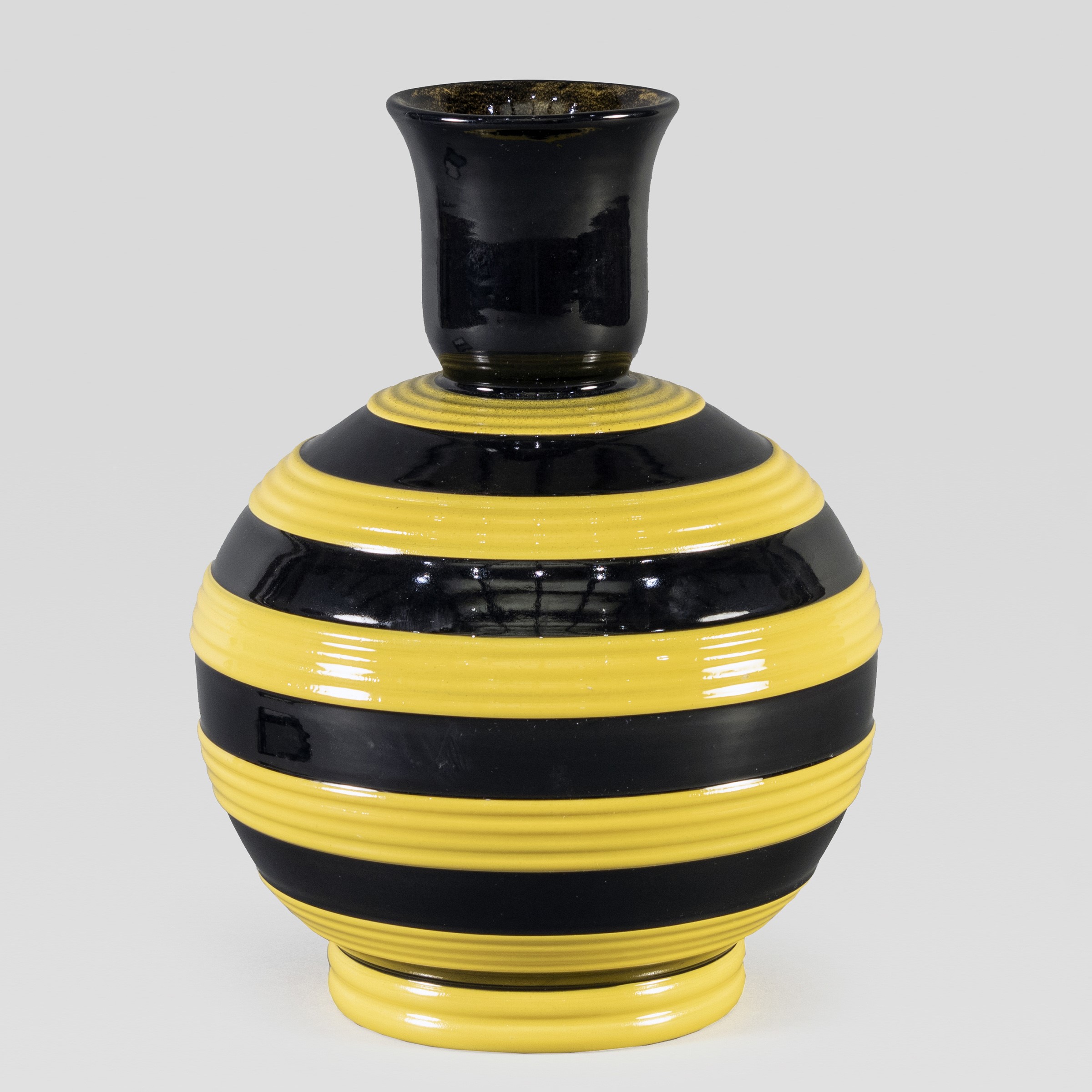 Umbertide, anni 30-40 vaso in ceramica policroma, marchio della produzione, lieve difetto