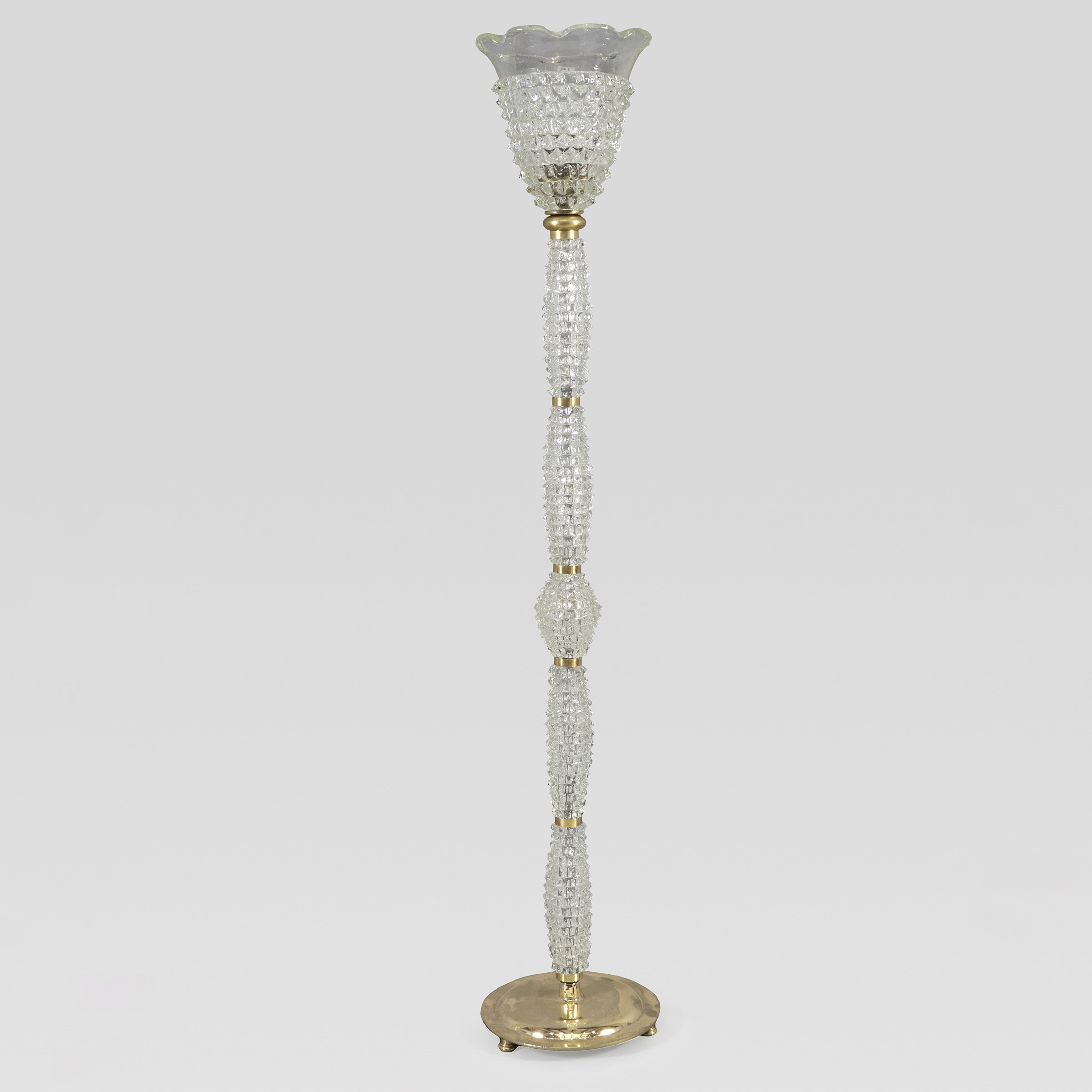 Italia, anni 40-50 lampada da terra in vetro rostrato ed ottone