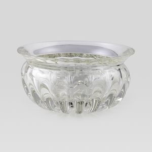 13x25,5 cm. Murano, anni 70-80 coppa centrotavola in vetro trasparente, firma a punta ed etichetta della prod [..]