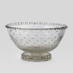 13,5x24 cm. anni 40-50 coppa in vetro trasparente a bolle, lieve difetto