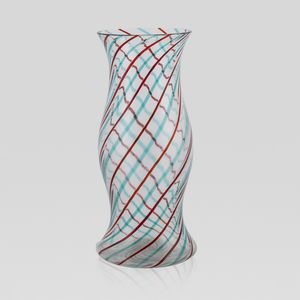 30x13 cm. Murano anni 60 vaso in vetro soffiato con decoro a canne colorate