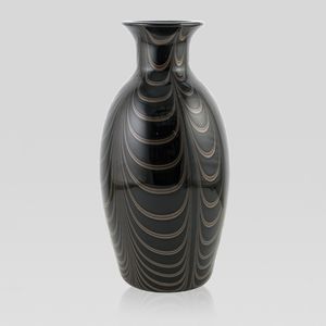d. 48,5 cm. Murano, 1981 grande piatto serie Filigrane in vetro soffiato con decoro a filigrana nero, firmato [..]