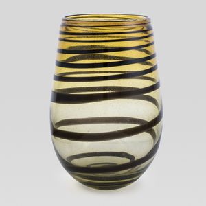 h. 33 cm. Italia, XX Sec. vaso in vetro ambra con fascia a spirale marrone, firma a punta
