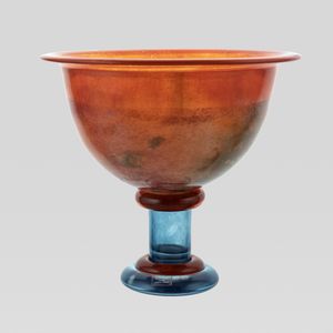 30x30 cm. Svezia, anni 90 coppa centrotavola serie Cancan in vetro policromo su fondo rosso, etichetta della [..]