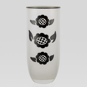 30x13,5 cm. anni 40-50 vaso in vetro opalino con decorazioni floreali argentate