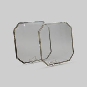 37x37 cm. Italia, anni 70 coppia di vassoi ottagonali in perspex e acciaio, firmati