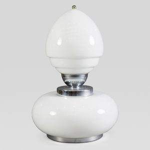 h. 34 cm. Italia, 1954 circa vaso portafiori luminoso mod. 1837, vetro incamiciato lattimo satinato, ottone laccato [..]