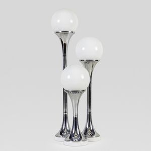 193x32x18 cm. Italia, anni 80 lampada da terra orientabile mod. Logo in alluminio e acciaio verniciato, etichetta [..]