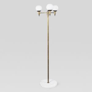 h. 186 cm. Italia, anni 60 lampada da terra mod. 2003 in ottone, vetro trasparente e diffusore in vetro satinato [..]