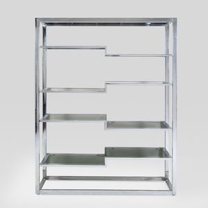 72x140x140 cm. Italia, anni 70 tavolo mod. Block in truciolato di legno, vetro specchiato, cristallo molato, [..]