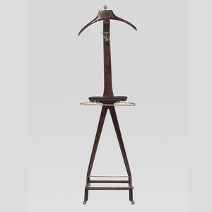 h.144 cm. Italia, anni 50 servomuto in legno ed ottone, marchio della produzione