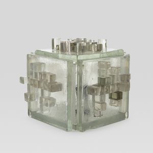 25x30x30 cm. Italia, anni 70 lampada da tavolo a cubo in vetro trasparente