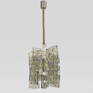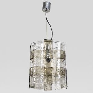 75x30x30 cm. Murano, anni 70 lampada a sospensione in metallo, vetro colorato e trasparente