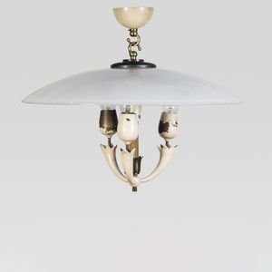 81x45 cm. anni 50 lampada a sospensione in metallo verniciato ed ottone