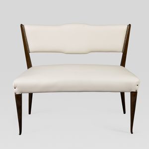 80x145x70 cm. anni 50 divano a fagiolo in legno e tessuto imbottito