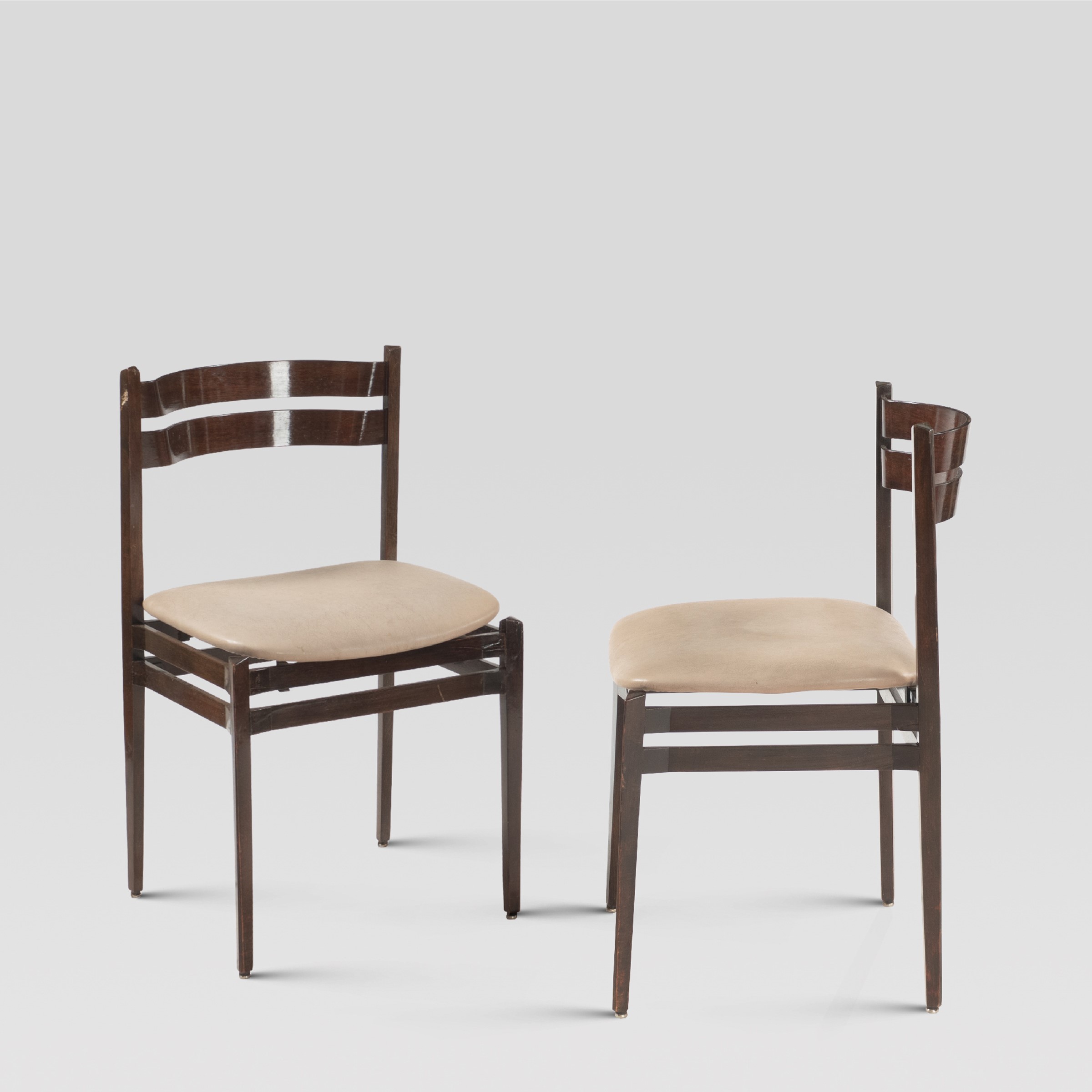 Italia, anni 60 quattro sedie in legno e vinilpelle