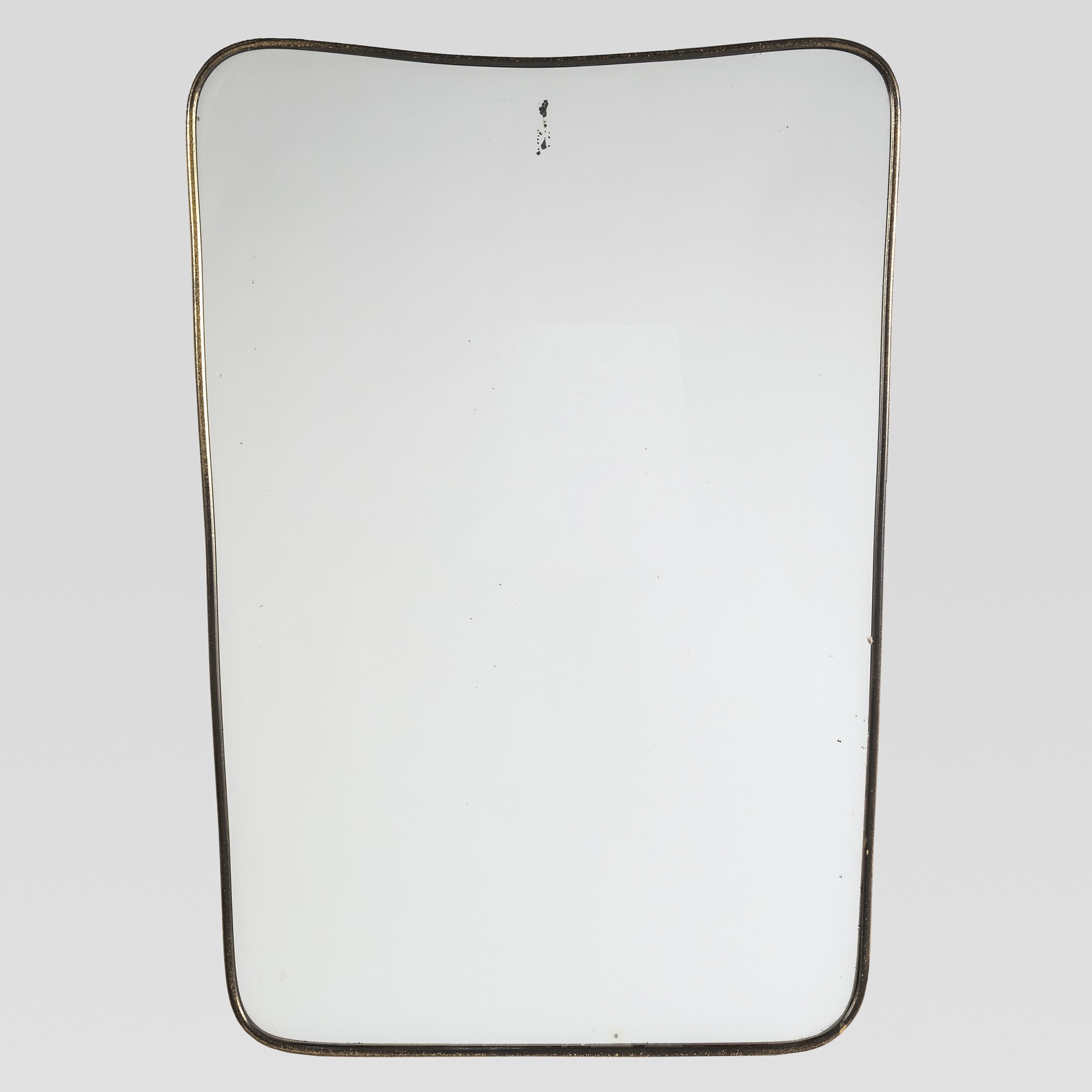 anni 50 specchio da parete in legno, ottone e vetro specchiato, difetti