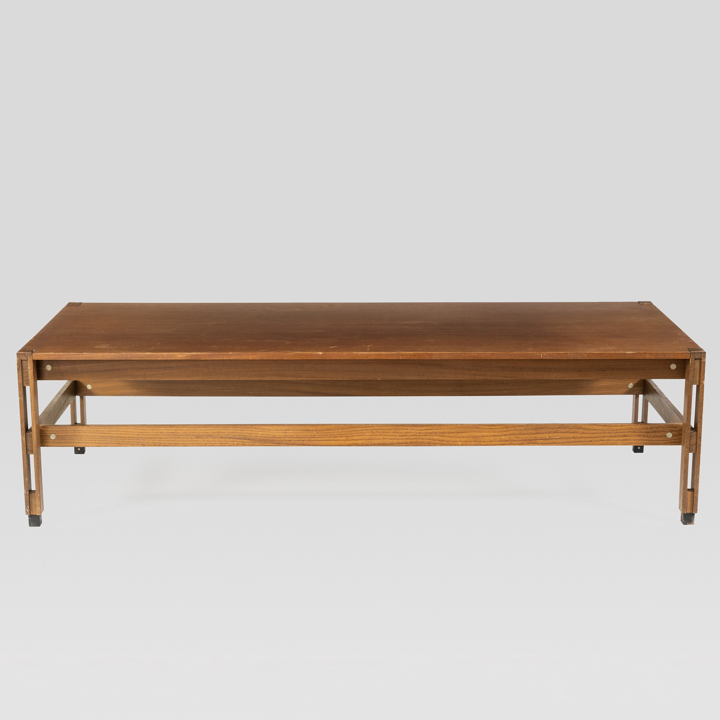 Italia, anni 60 tavolo basso serie Tivoli in legno e metallo verniciato, etichetta della produzione