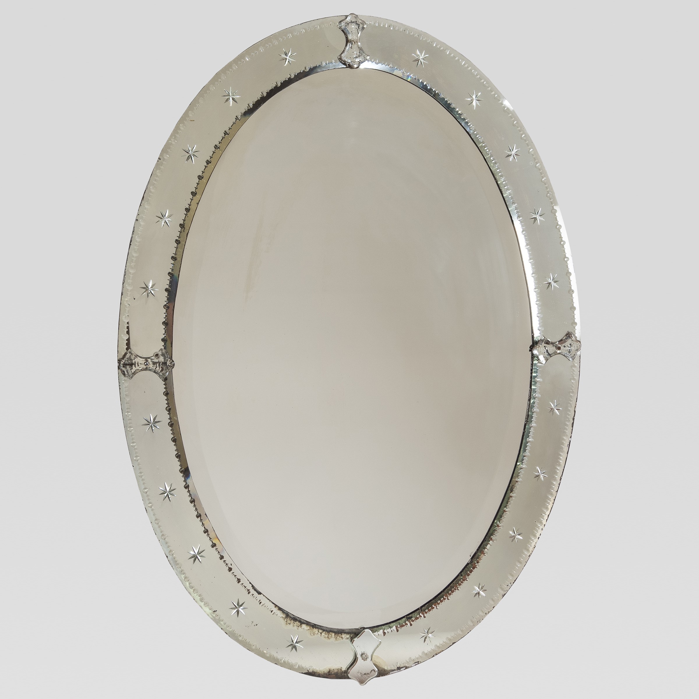 anni 30-40 specchio da parete in vetro specchiato e legno, lievi difetti e mancanze