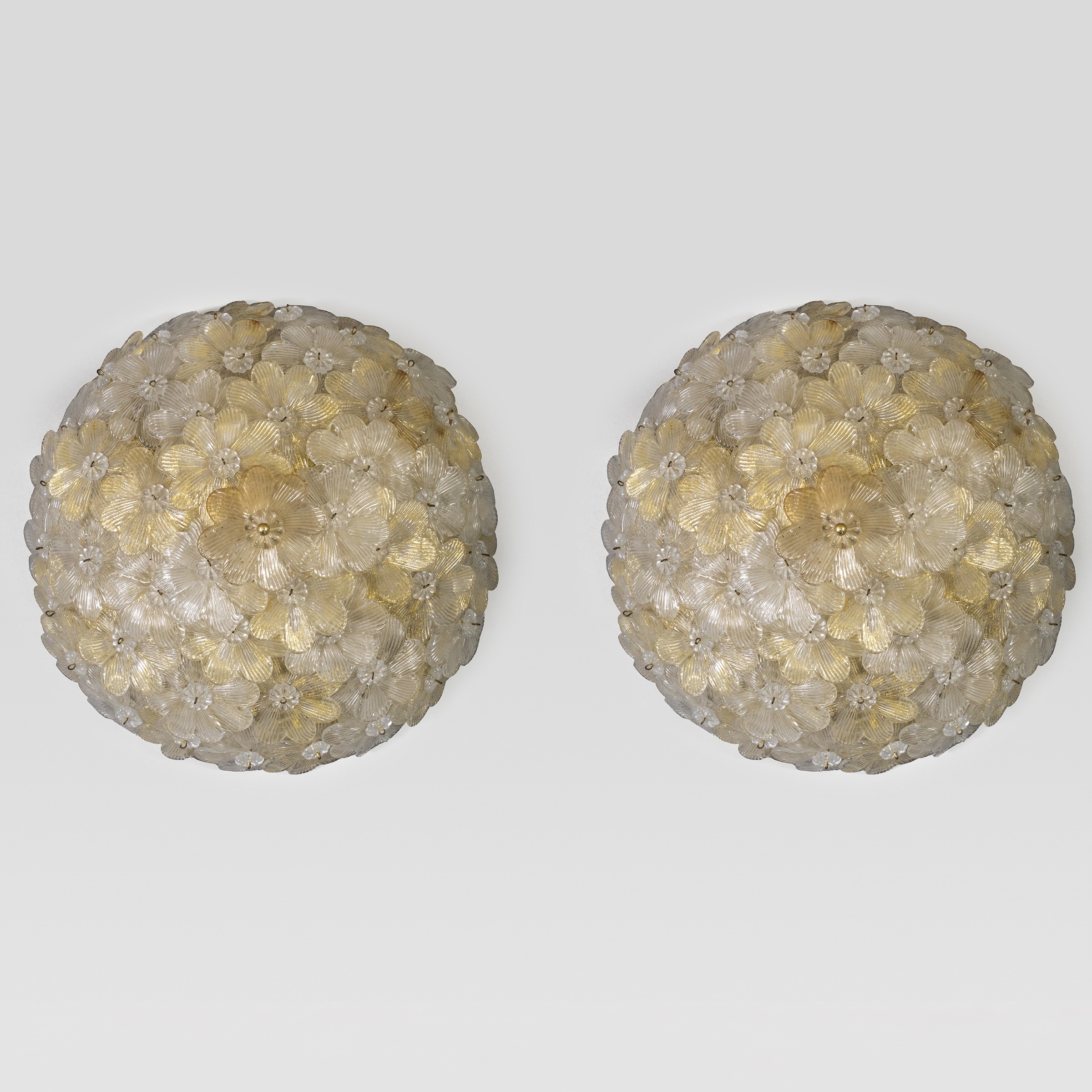 anni 70-80 coppia di lampade da soffitto in vetro trasparente e foglia d'oro