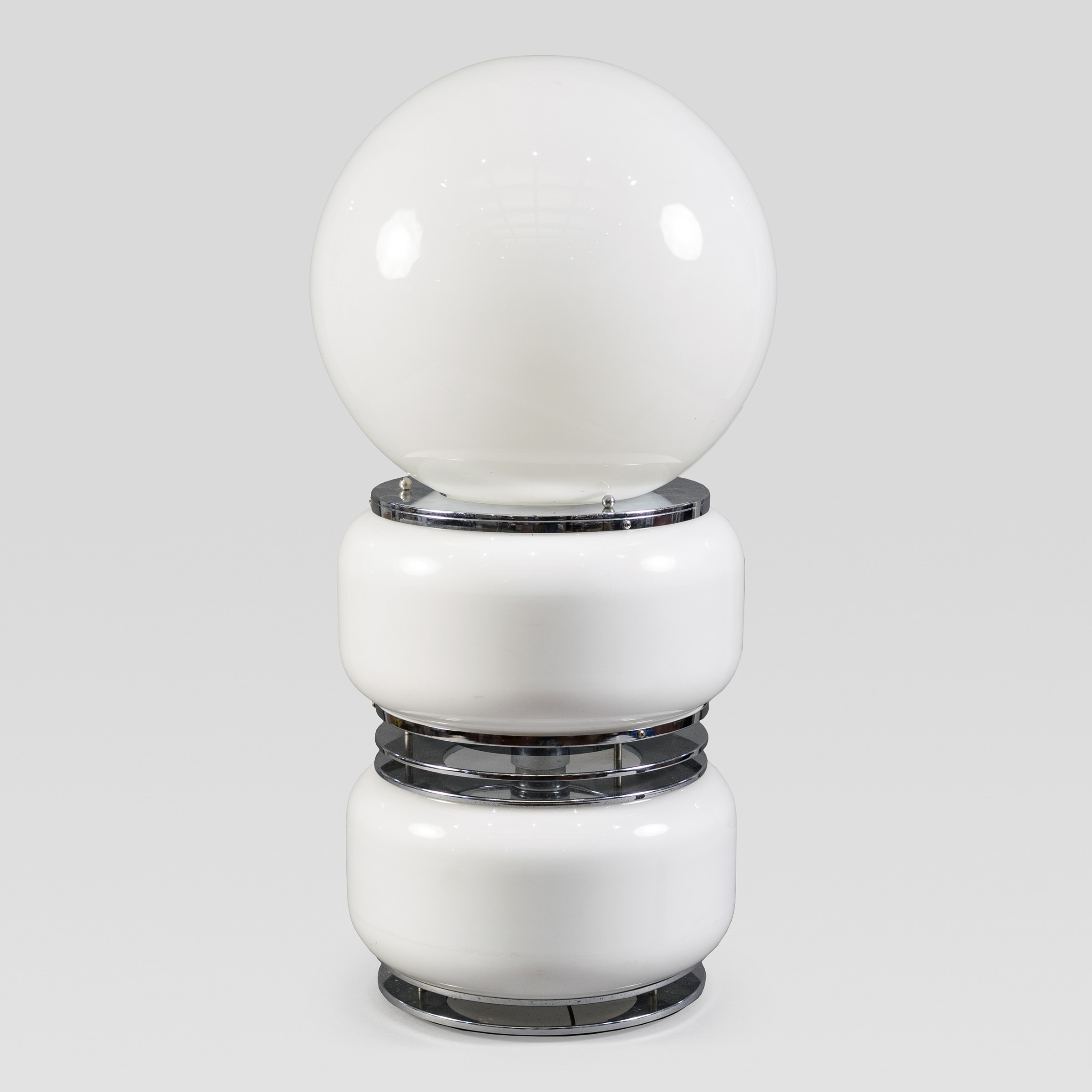 anni 60 lampada da tavolo in acciaio, perspex e vetro lattimo