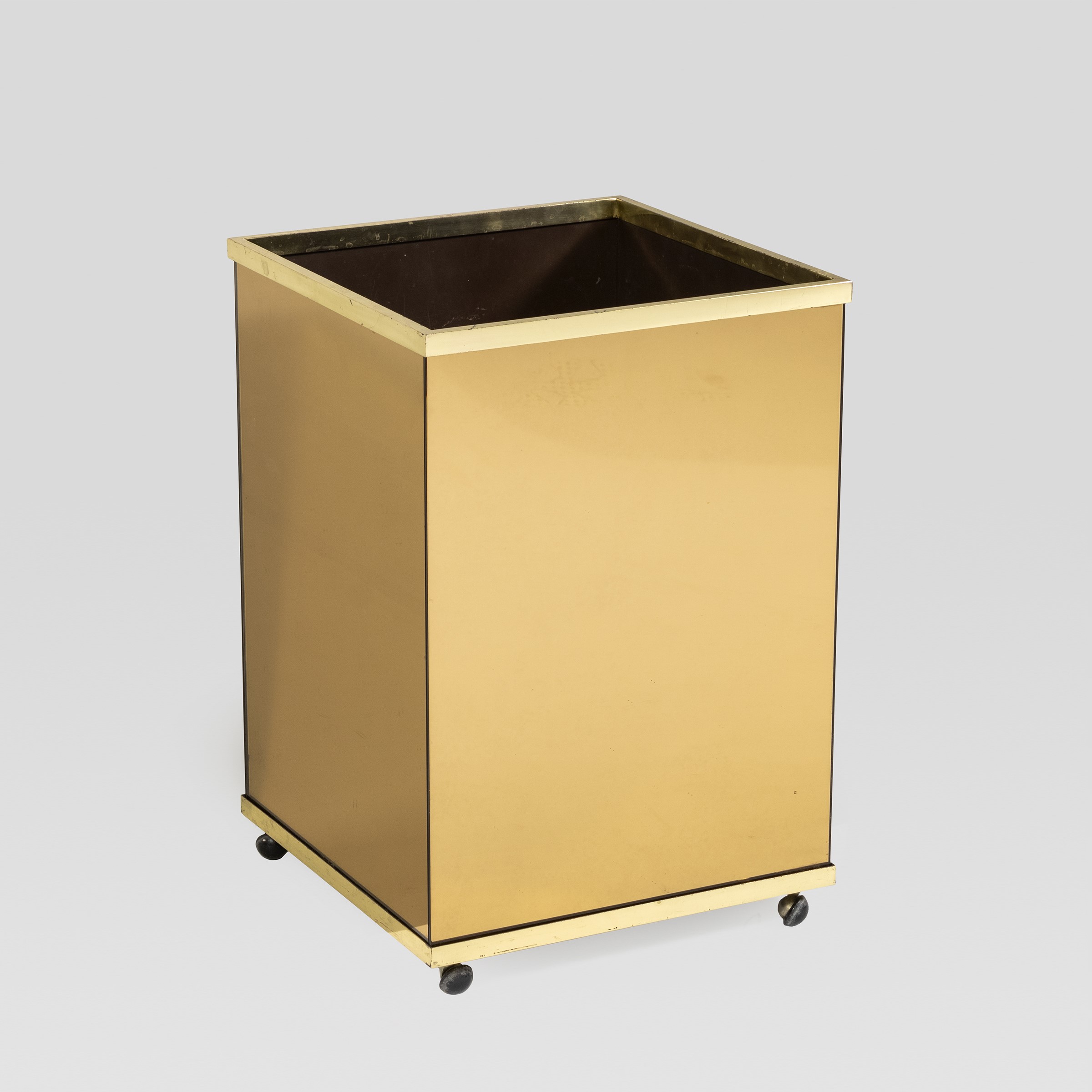 anni 70 portavaso a rotelle in vetro specchiato ed ottone