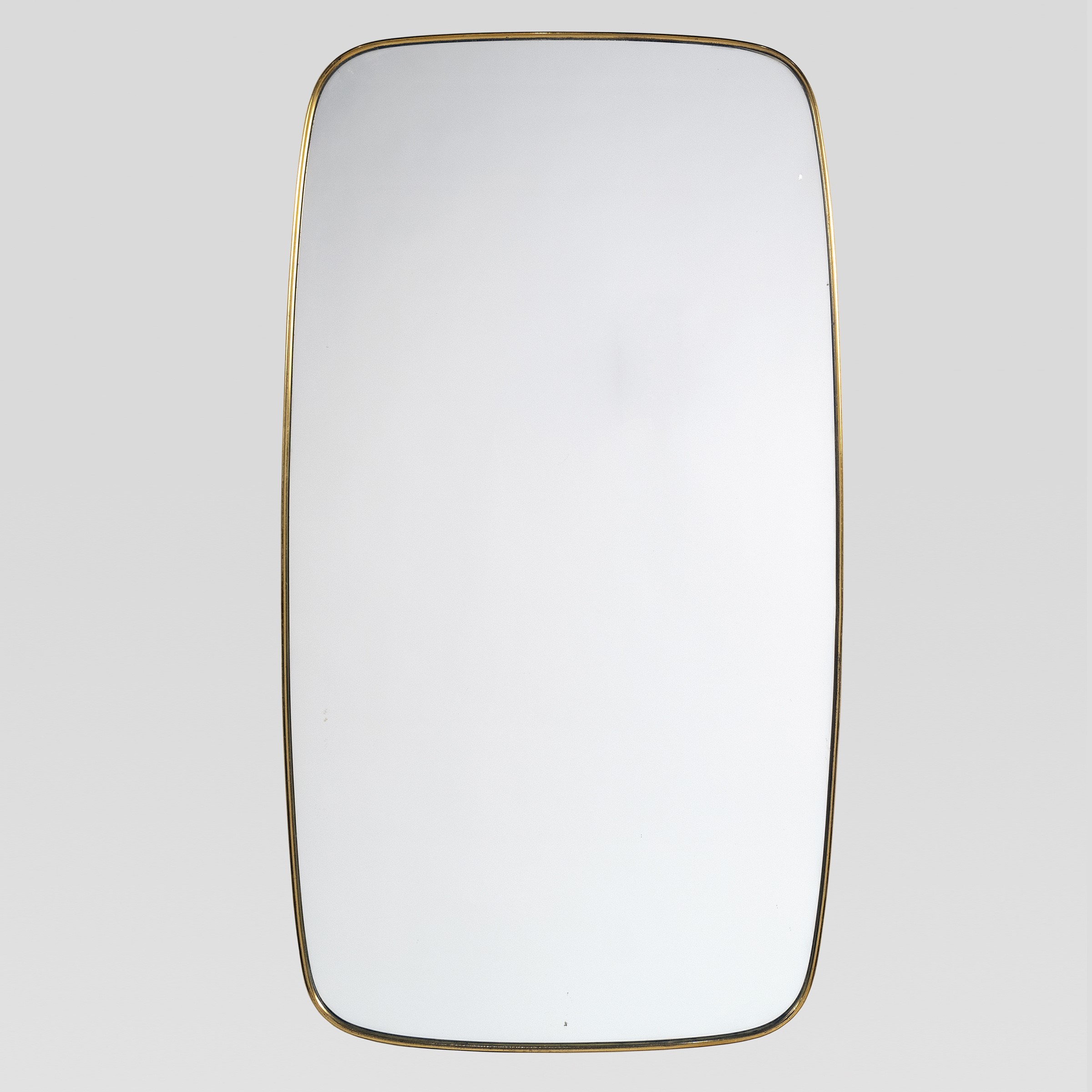 anni 50 specchio da parete in legno, ottone e vetro specchiato