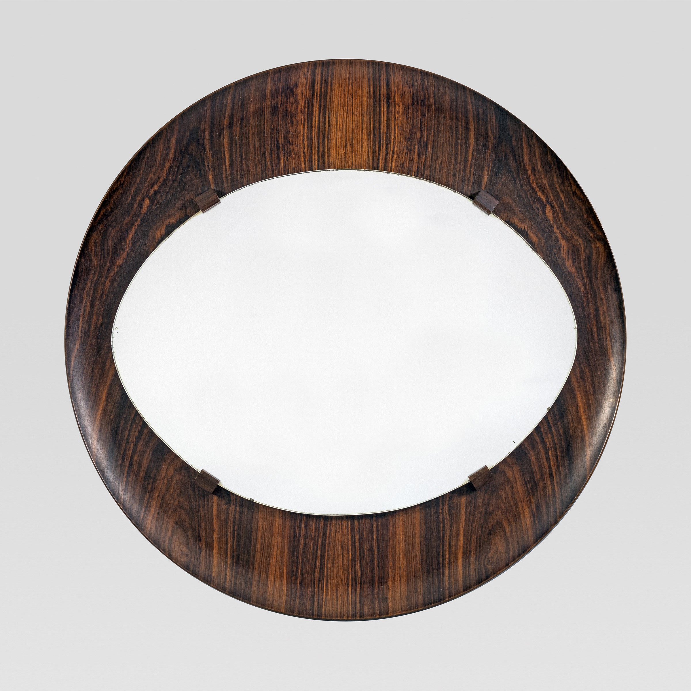 anni 60 specchio da parete in legno curvato e vetro specchiato