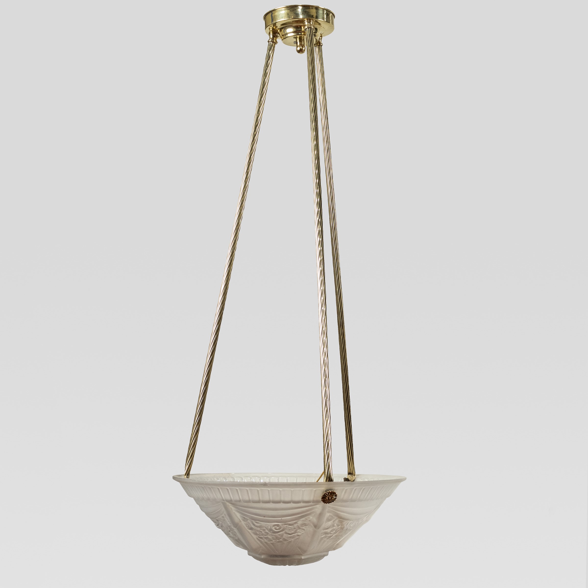 Francia, anni 30 lampada a sospensione in vetro satinato ed ottone, difetti