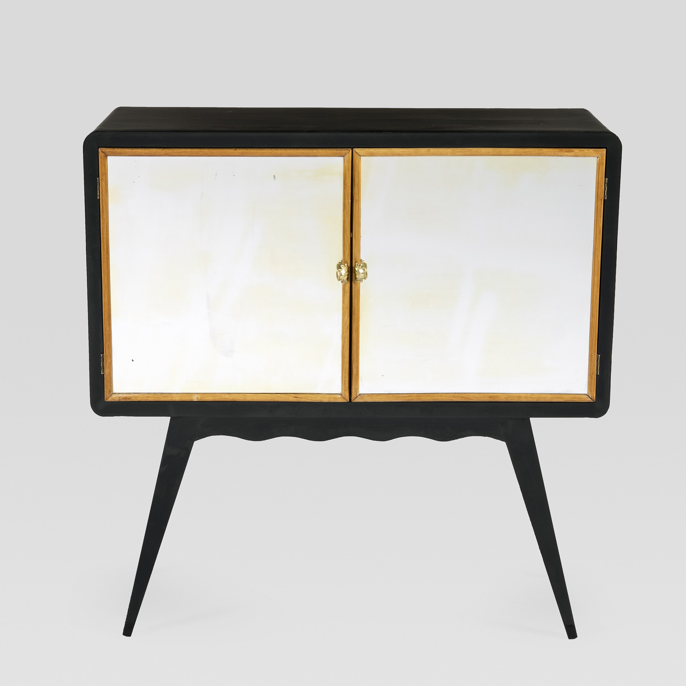 anni 40-50 mobile bar in legno ebanizzato, vetro specchiato e retroverniciato