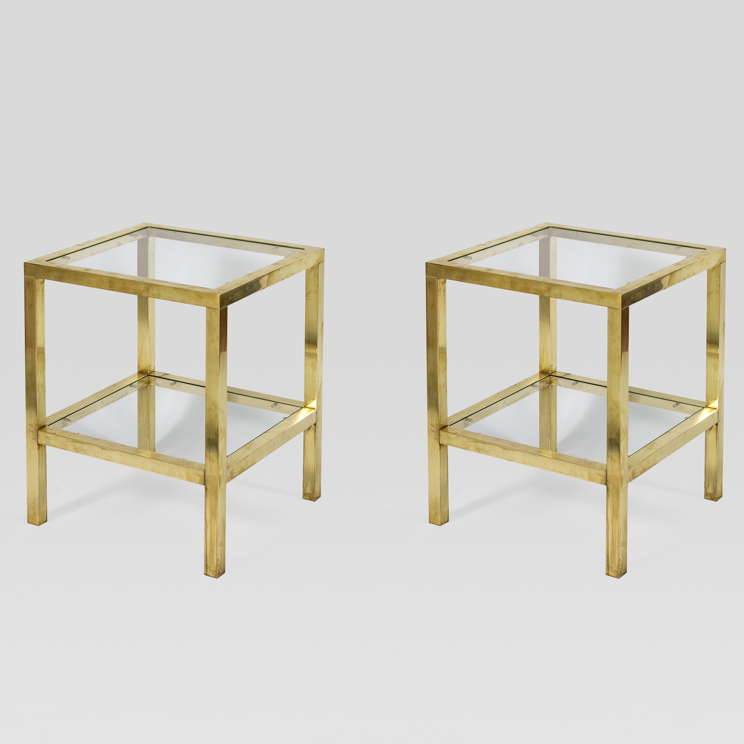 anni 70 coppia di tavolini in ottone e vetro trasparente