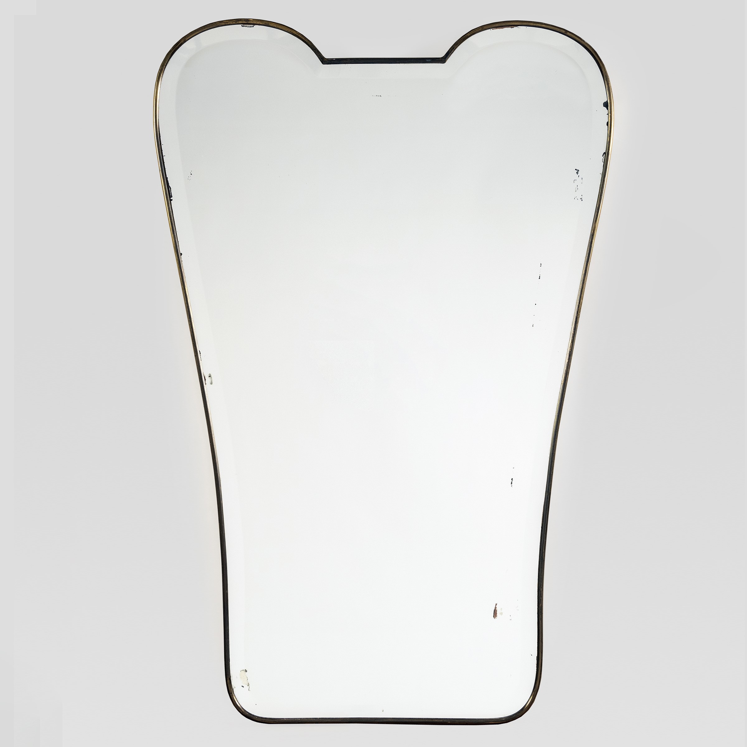 anni 50 specchio da parete in legno, ottone e vetro specchiato