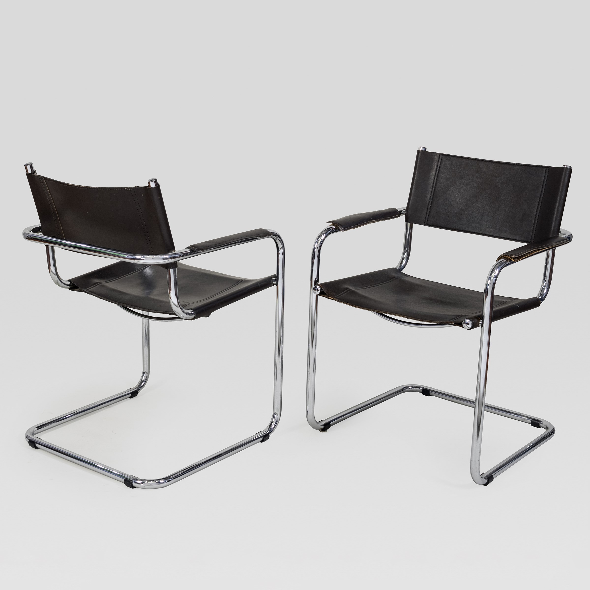 anni 70 quattro sedie in metallo cromato e pelle, usure