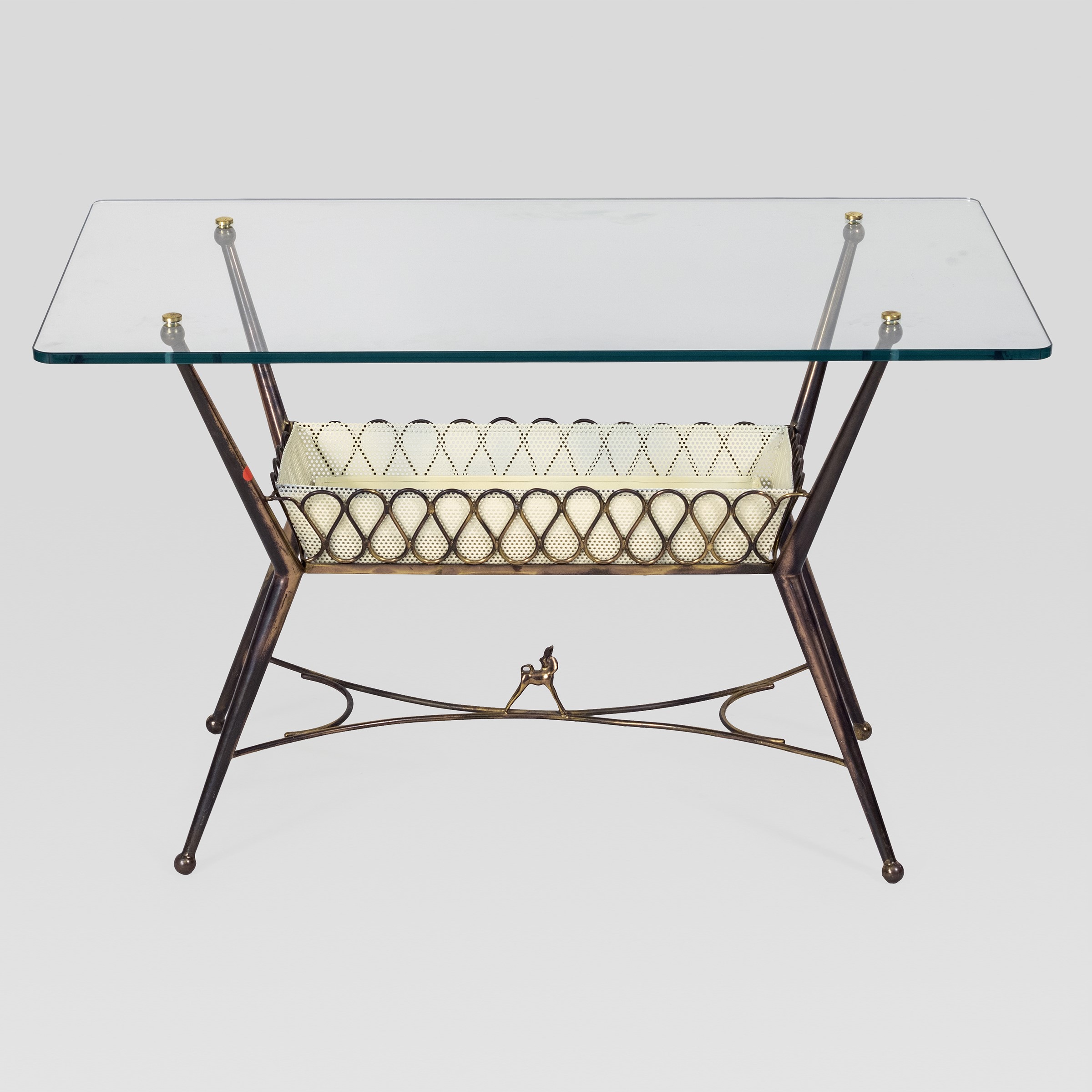 anni 40-50 tavolino basso in vetro, ottone e metallo verniciato