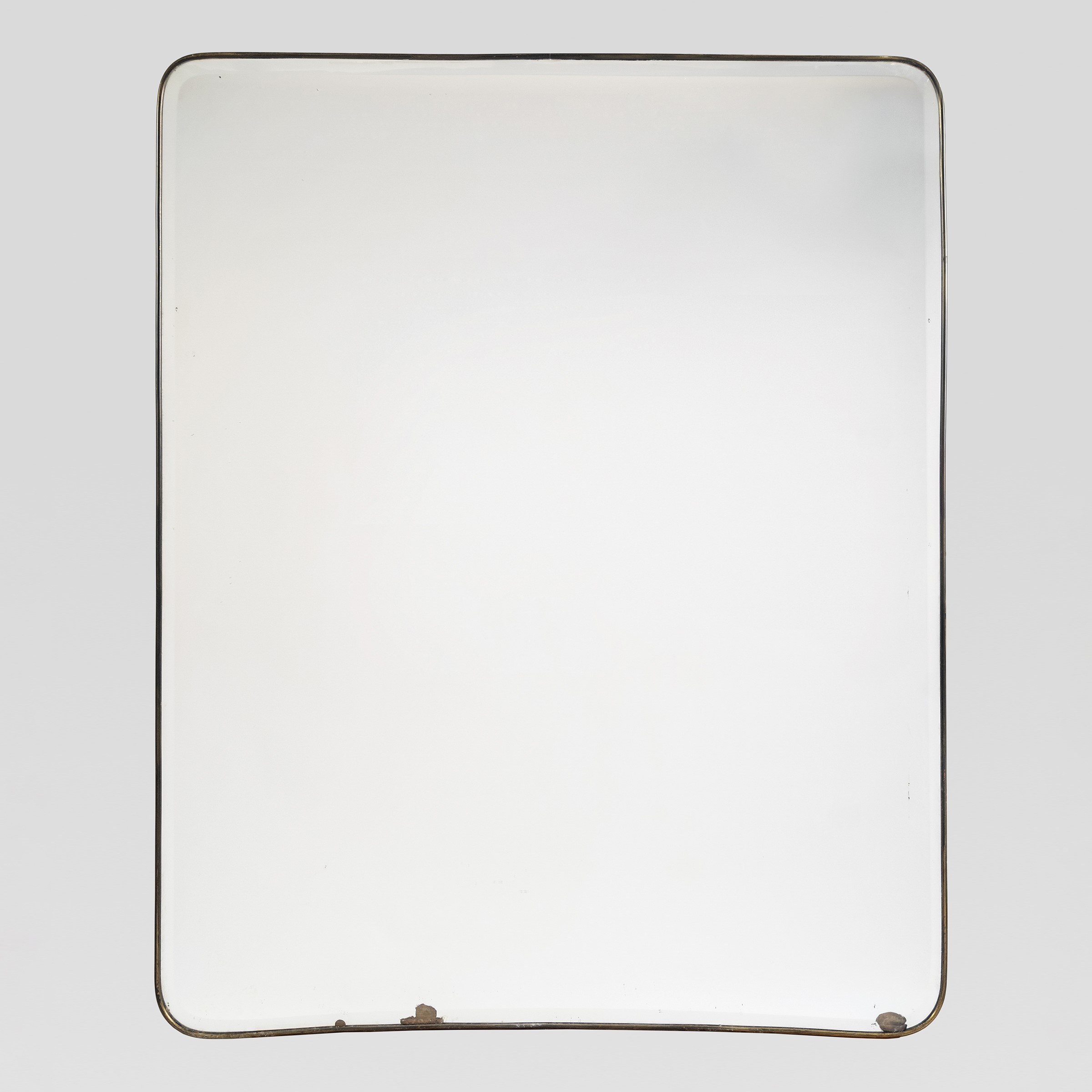 anni 50 specchio da parete in legno, ottone e vetro specchiato