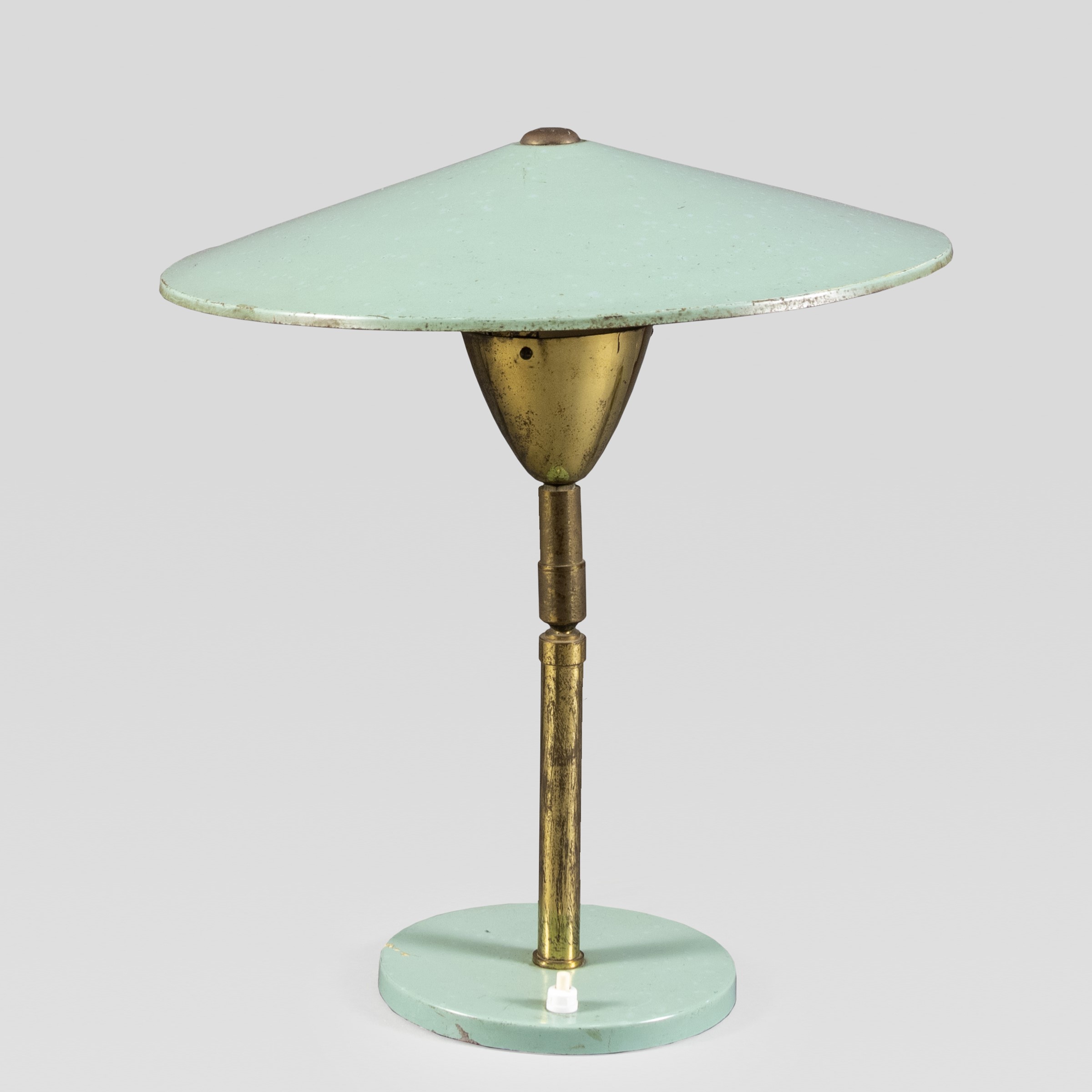 anni 50 lampada da tavolo orientabile in metallo verniciato ed ottone, usure