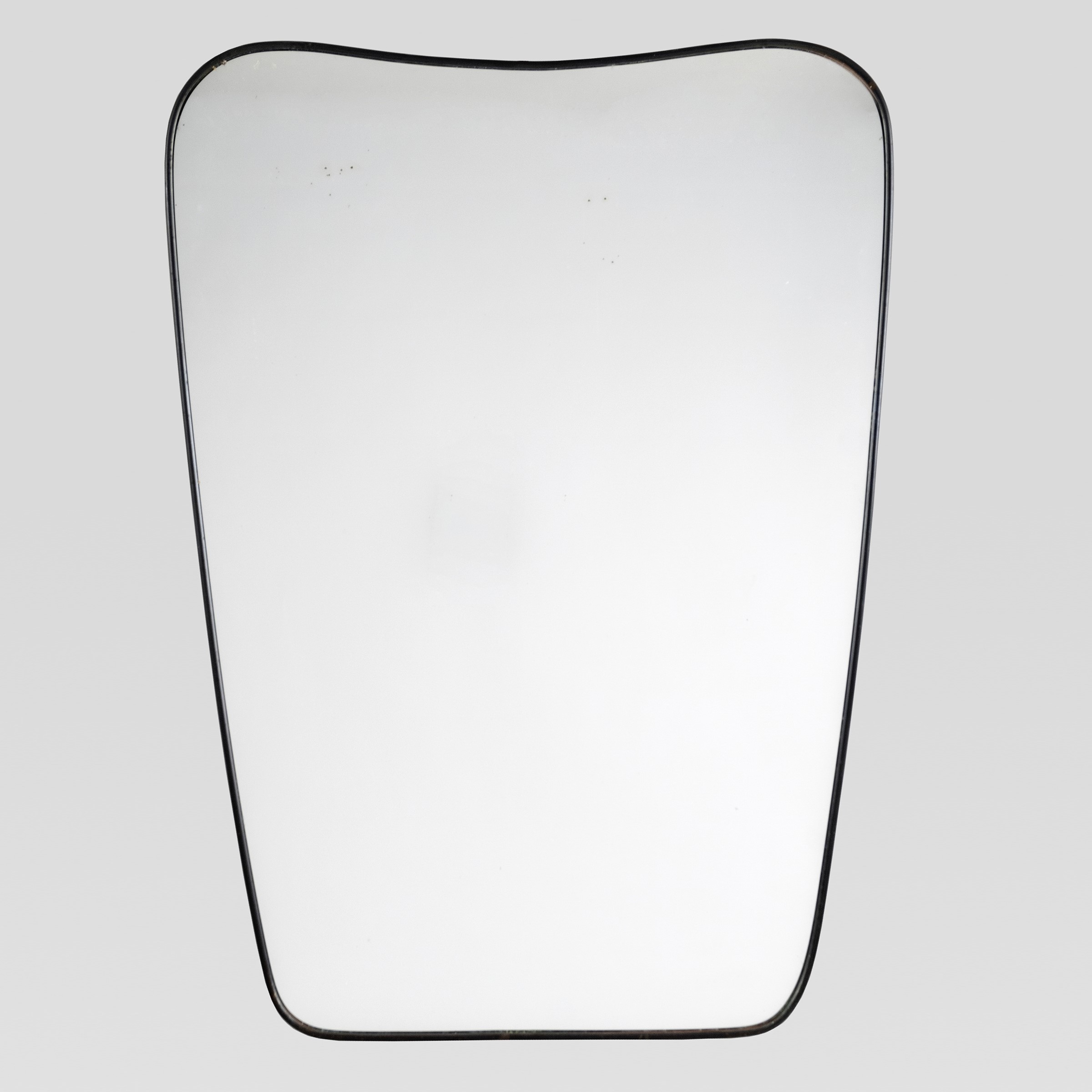 anni 50 specchio da parete in legno, ottone e vetro specchiato